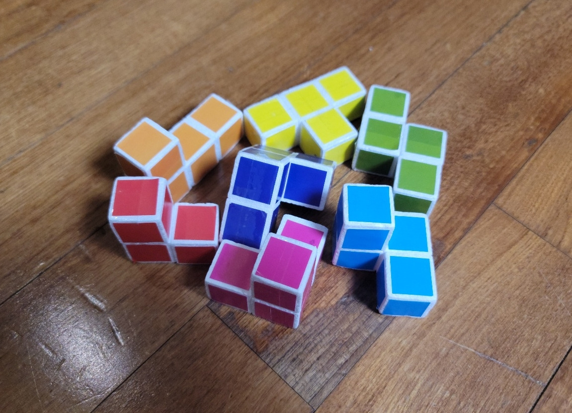 소마 큐브(soma cube)란 1933년 덴마크의 시인이자 물리학자이며 수학자 피에트 하인이라는 사람이 만들었습니다. 양자 역학 수업을 듣던 도중에 개발했다고 알려져 더 화제가 되었던 3차원 형태의 퍼즐입니다. 3개 또는 4개의 정육면체로 조합하여 만든 일곱 개의 조각으로 3 x 3 x 3 큐브 형태의 정육면체를 비롯해서 많은 기하학적 모양들을 만들 수 있도록 한 것입니다.