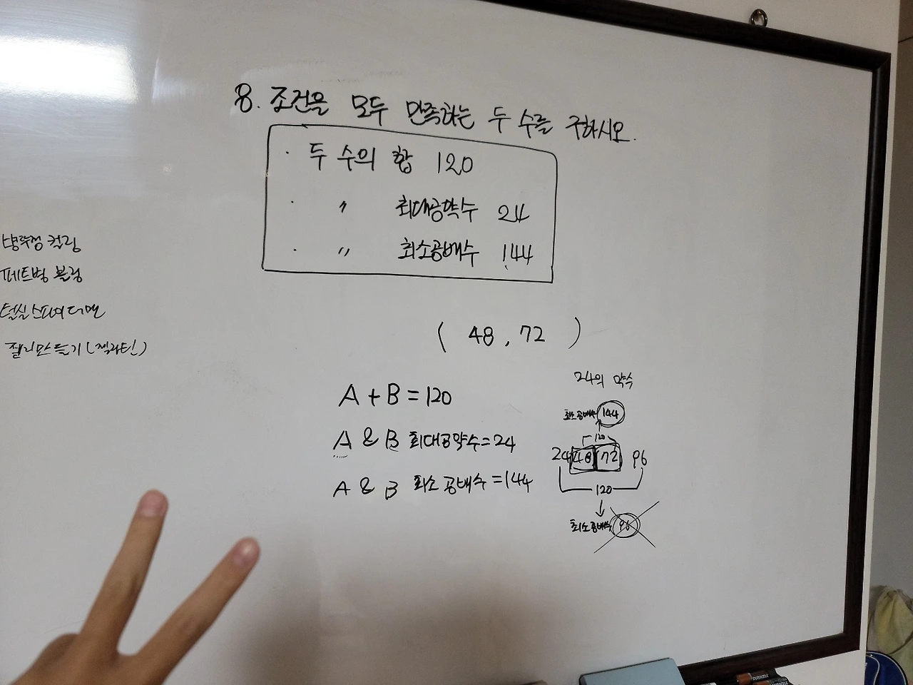 합니다. 그런 뒤 그 내용을 서로 설명해주고 마지막에는 제가 지정한 문제를 화이트보드에다 써가면서 설명하도록 했습니다.