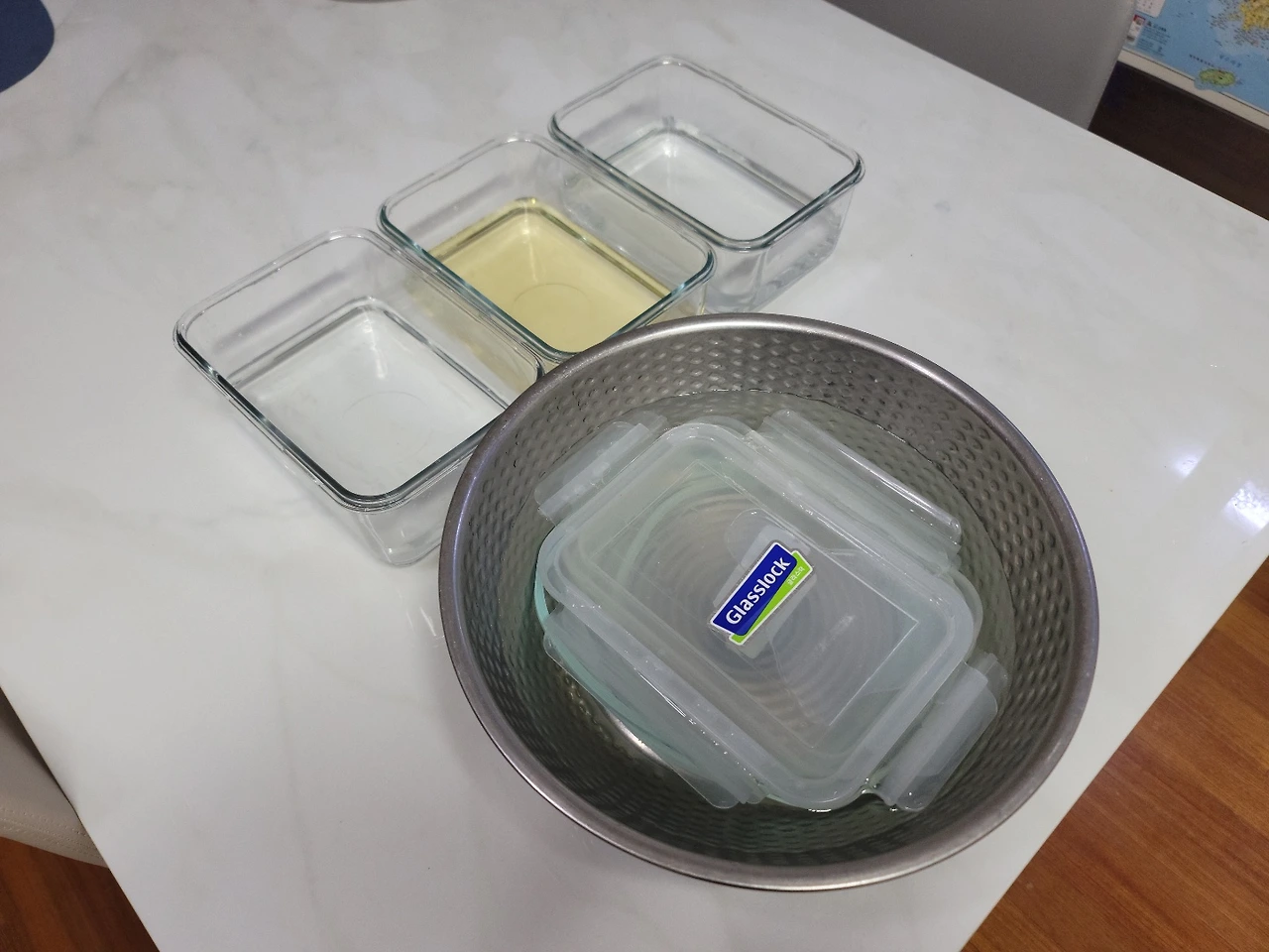 반찬통의 냄새가 빠지는 데에 유의미한 차이가 없었다~