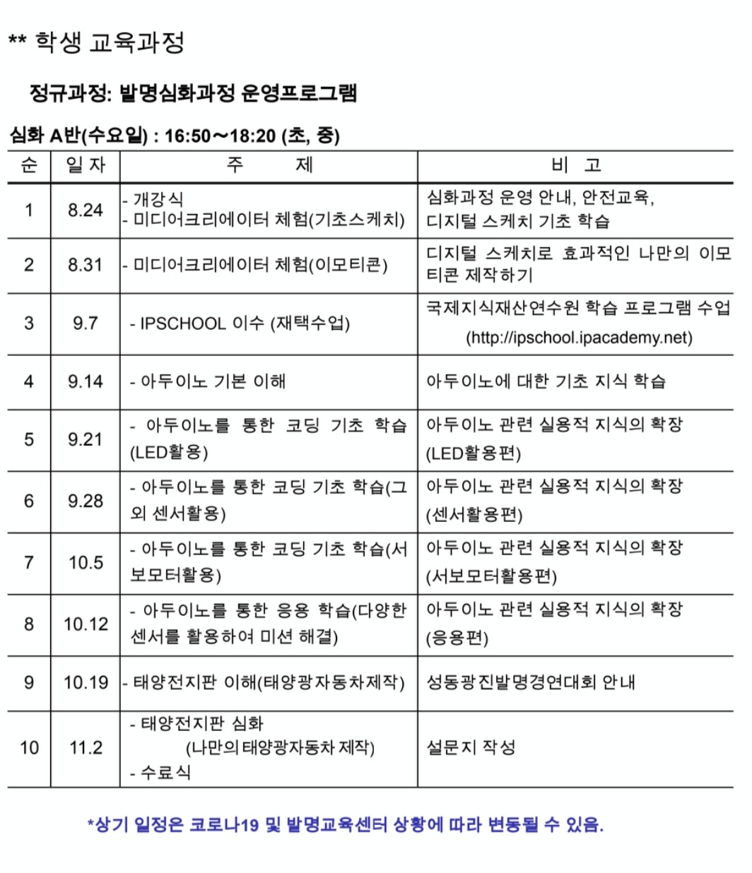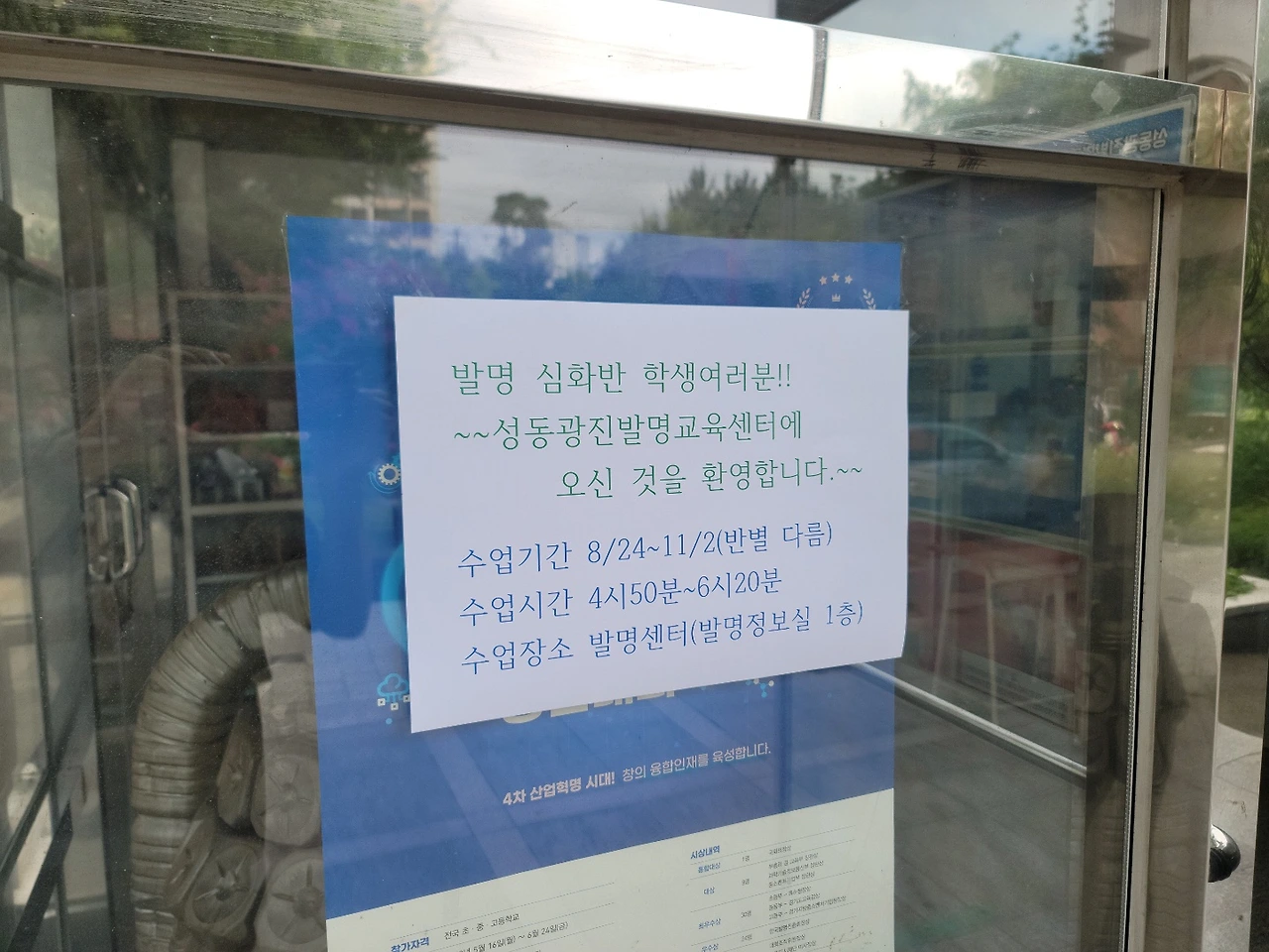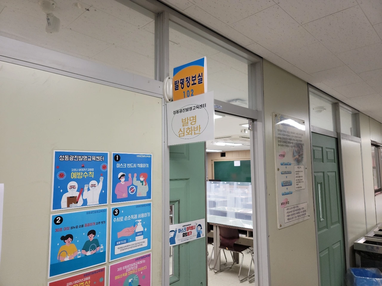원래 초급, 심화 모두 성수중학교에 있는 발명센터에서 집합교육이었는데 불행 중 다행으로 초급반 수업을 하던 상반기 4~5월에는 온라인 zoom 수업으로 대체되어서 직접 가지 않아도 되었죠. 그런데 이번 심화반은 집합교육으로 시행하기로 정해진 모양이었습니다.