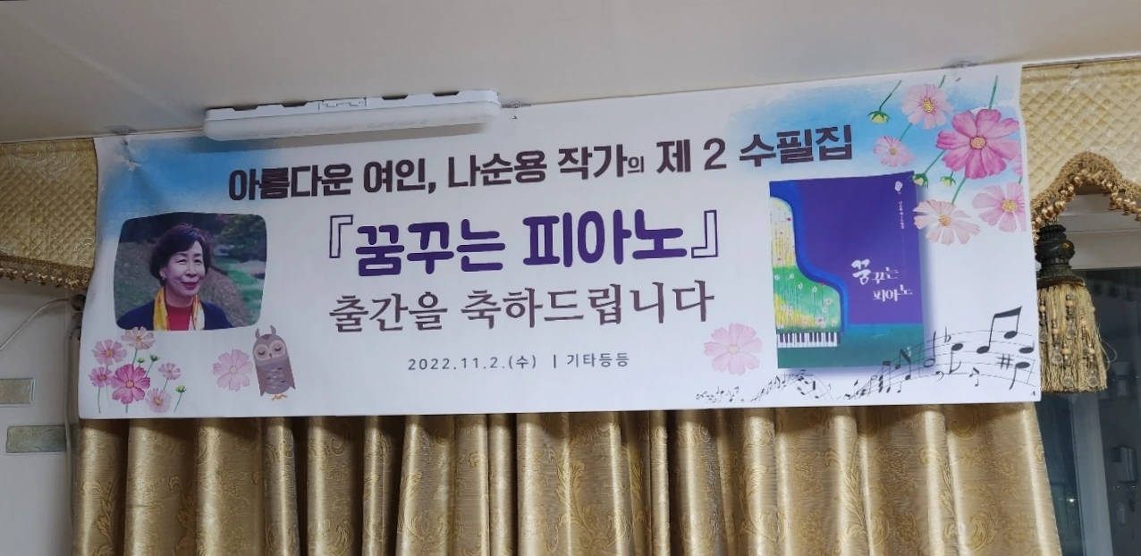 제 어머니께서는 활동기간이 짧지 않으신 수필가이십니다. 공무원으로서 직장생활을 하시는 동안 글을 쓰시기 시작하셨죠. 그렇게 열심히 모은 작품들을 결과물을 2017년에 첫 번째 수필집을 통해 세상에 선보이셨습니다.