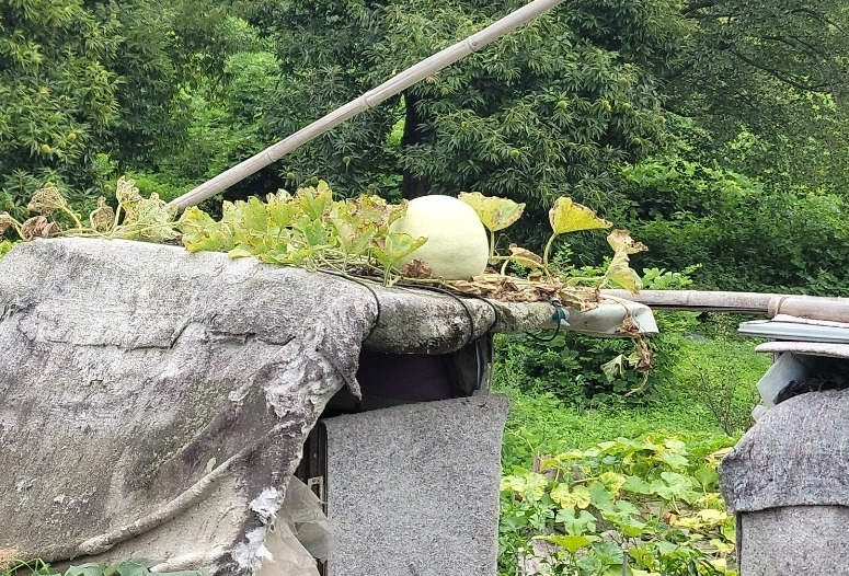 호박도 있고 박도 있고 동네 마트에서 보기 힘든 야채들도 눈에 띕니다. 아직은 더 쑥쑥 자라야 하는 옥수수도 있고요.