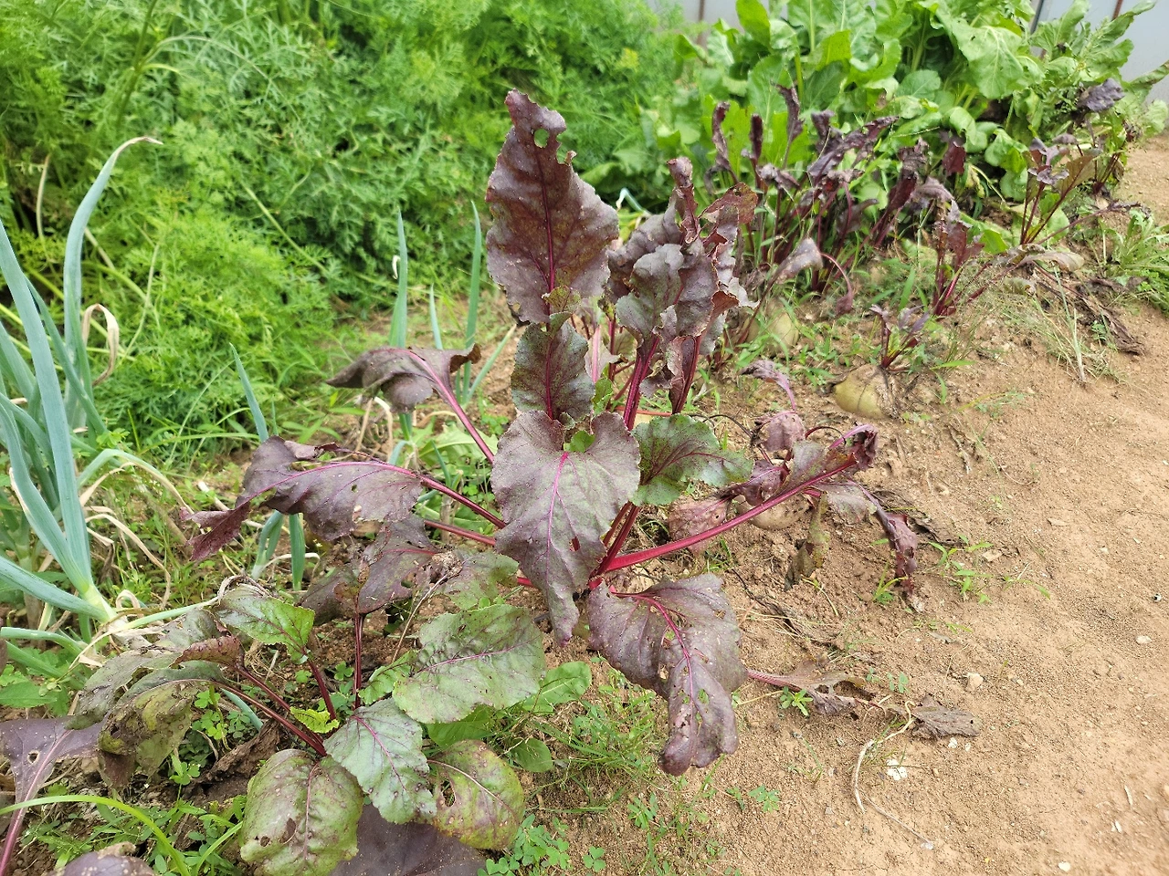 왼쪽 위에서부터 시계방향으로 쌈야채, 비트, 고구마, 오이