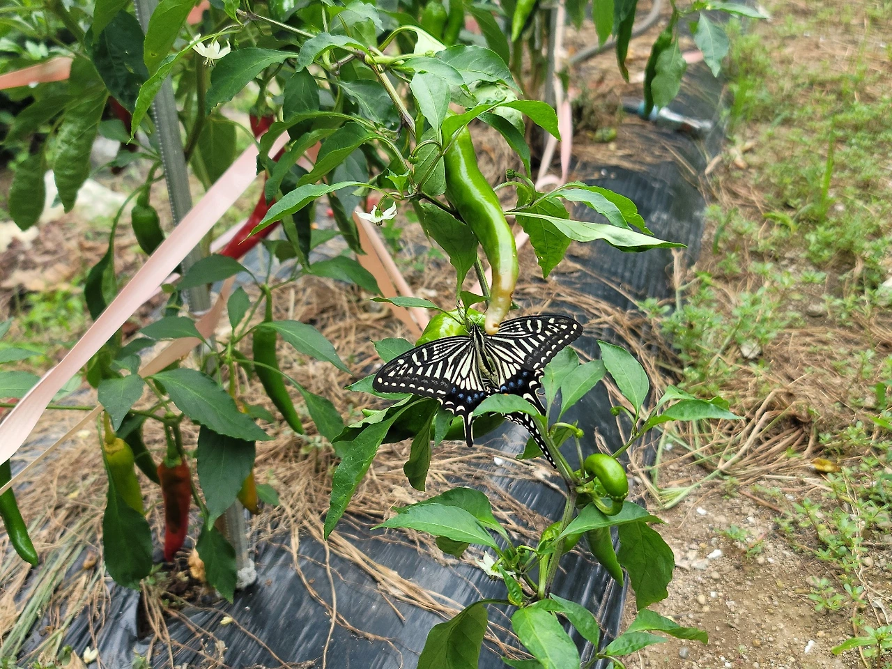 아이들은 텃밭에 도착하자마자 할아버지와 짧은 인사를 나누고 곧바로 고추를 따는데 투입됩니다. 벌레를 먹은 것들이 간혹 보이지만 농약을 전혀 뿌리지 않기 때문에 이 정도는 감수할 수 있습니다.