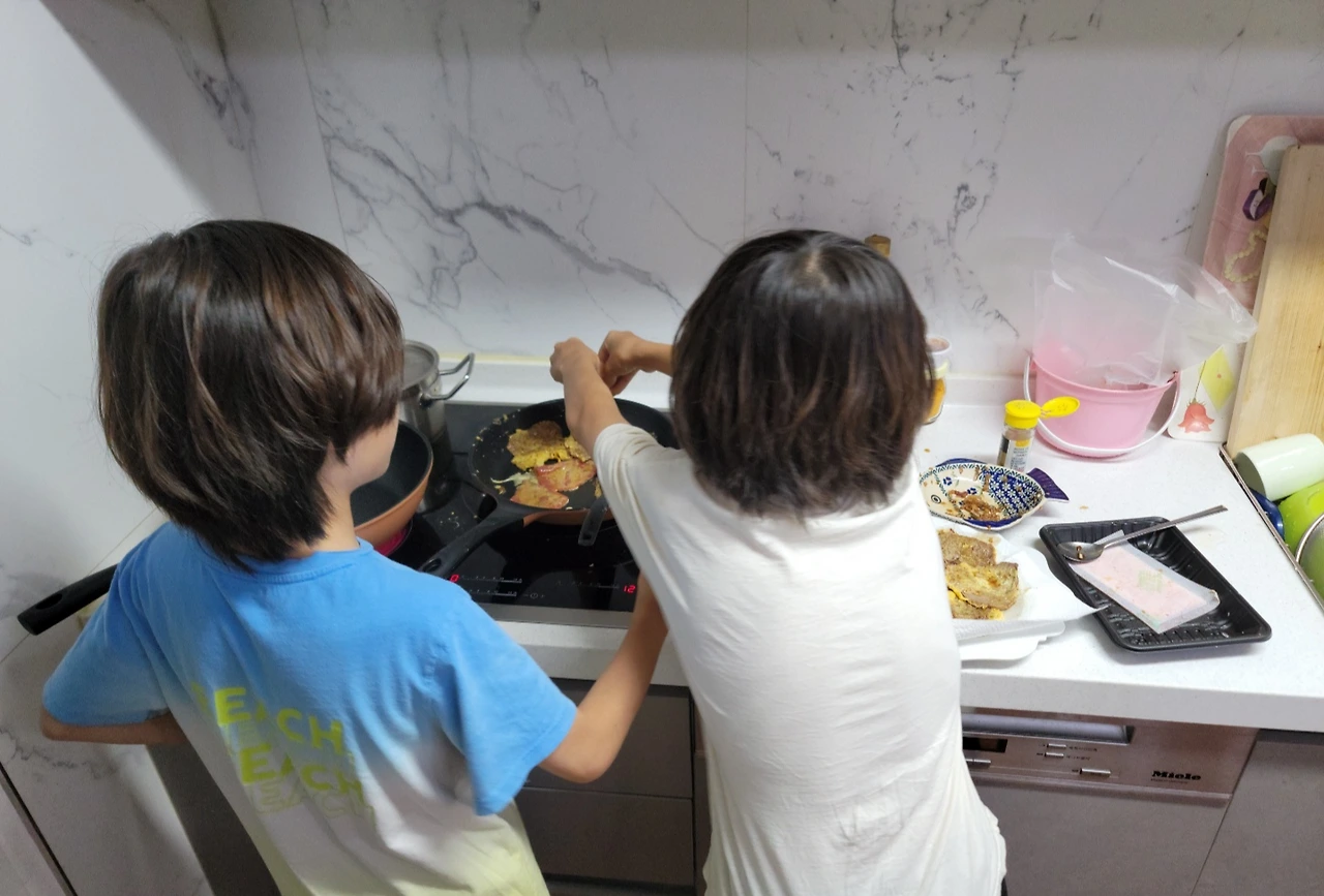 외출을 하고 들어온 저는 다른 일을 하기로 했고 아내와 아이들이 낙지볶음과 육전을 만들기로 한 것입니다.