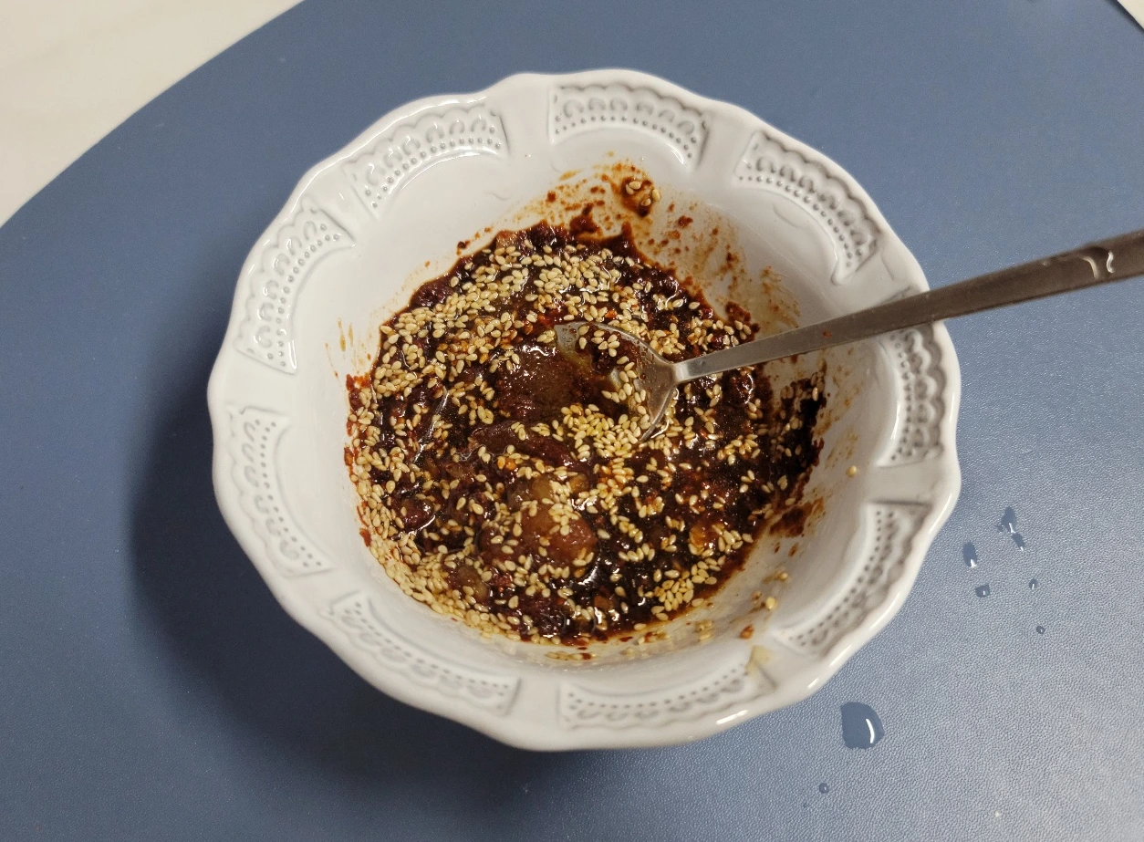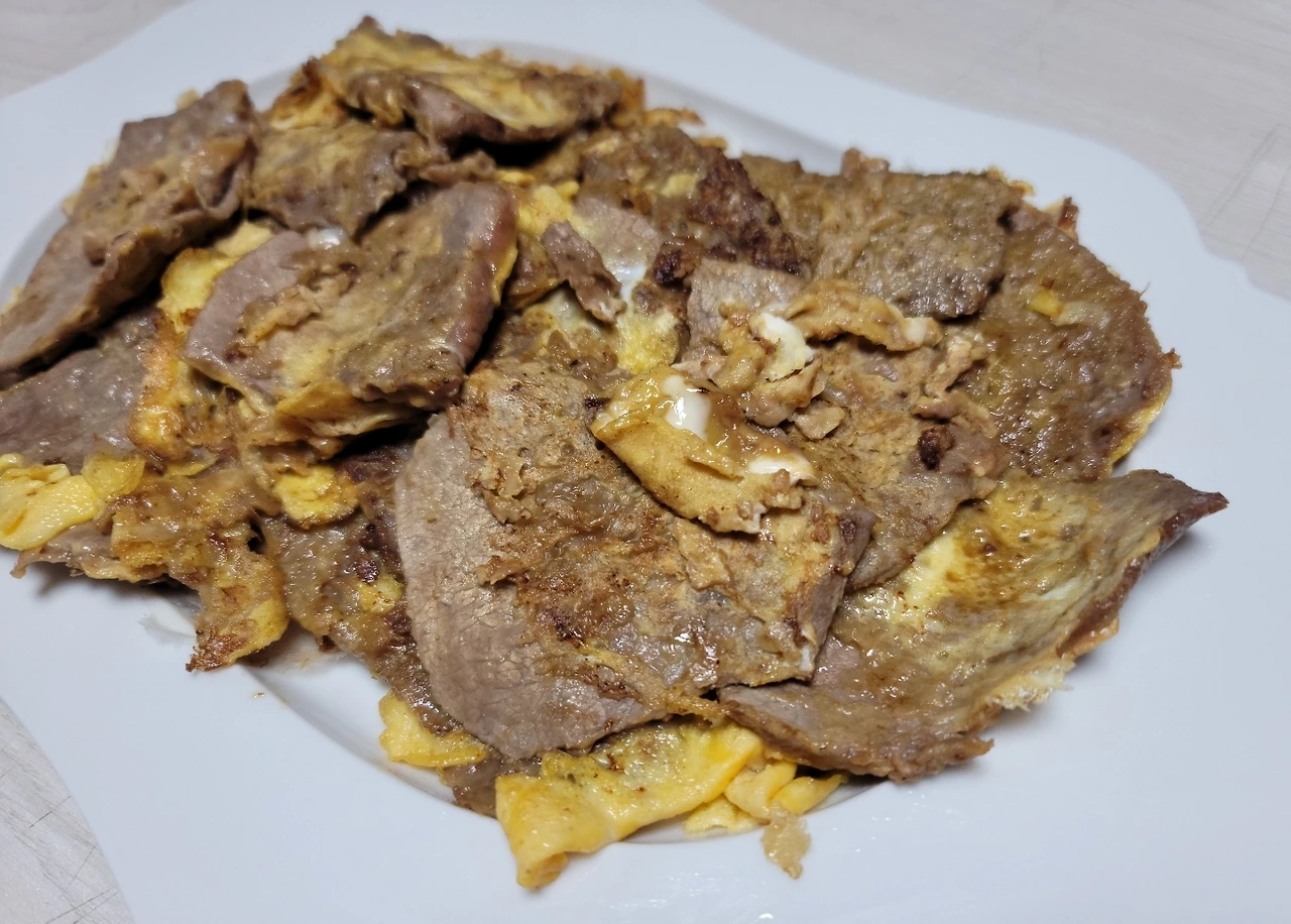 후추 뿌린 홍두깨살에 특제양념소스(?)와 계란물