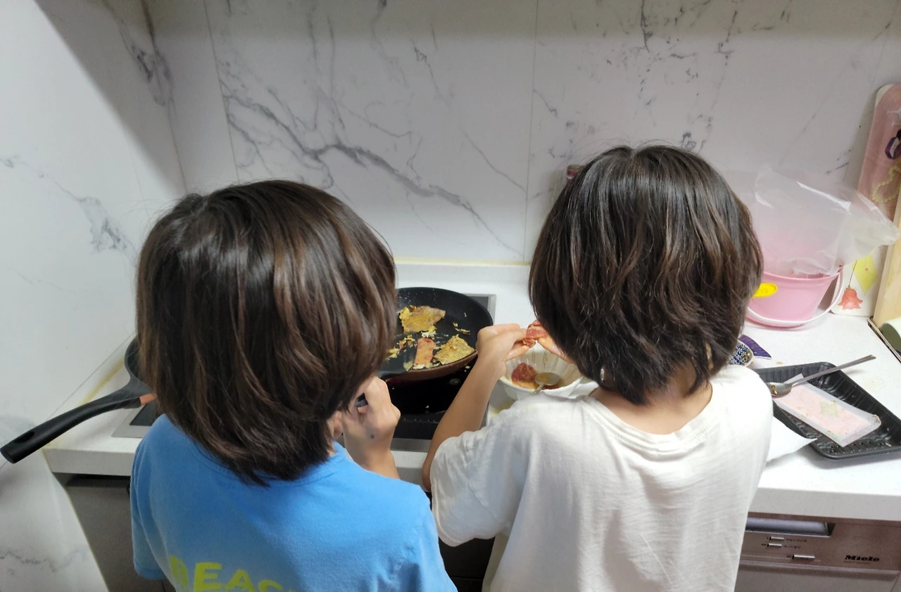 육전을 만들기 위한 아이들의 분주한 손놀림