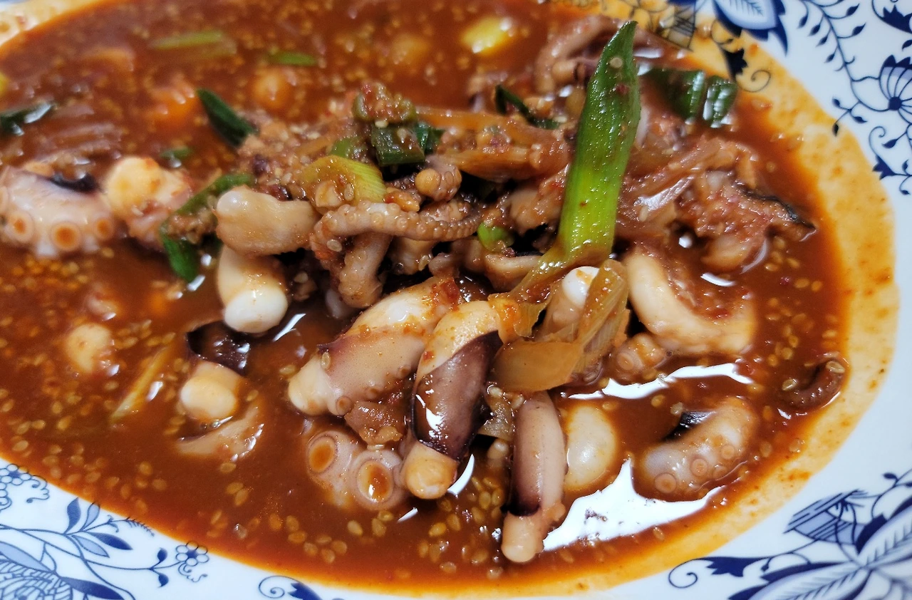 낙지와 양념과 야채가 섞인 이 비주얼이 먹기 전에 가장 먹음직스러운 모습이 아닌가 생각이 되네요. 그냥 한 숟가락 퍼먹고 싶은 기분입니다.