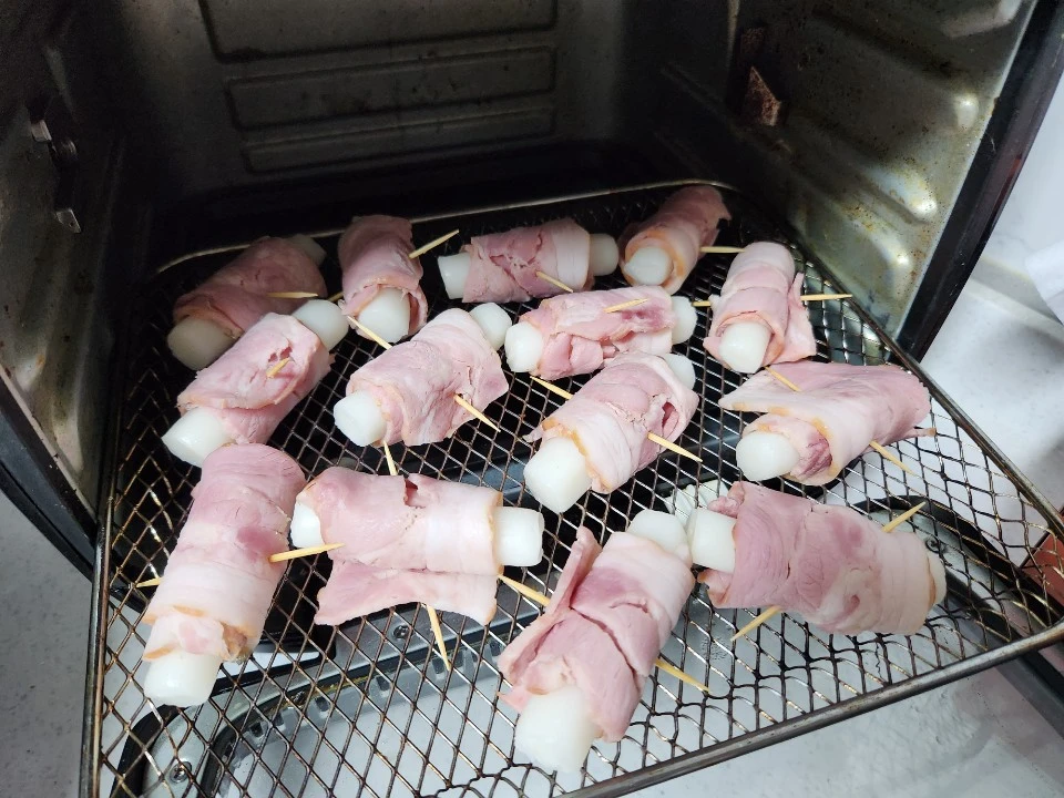 이렇게까지 기대치가 높은 현장체험학습인데 부모가 그 기대에 미치지 못한 준비를 하는 건 또 미안한 일이라는 생각을 하게 됩니다. 아이들과의 상의한 대로 저는 어제 재료를 사 오고 아내는 그걸 저녁에 다듬고 다음 날에는 아침에는 유부초밥을 위해 새로이 밥도 안치고 계란말이도 만들고 전날 만들어놓은 베이컨 떡말이는 에어프라이어로 익혀냅니다.