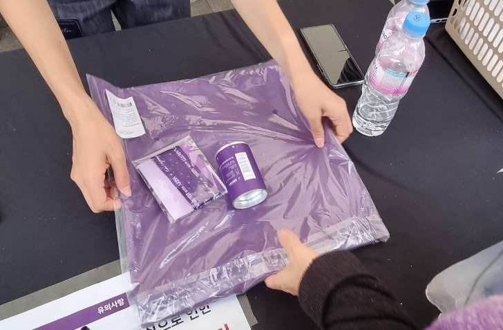 어머니와 동생은 현장에서 접수를 마치고 기본으로 지급하는 굿즈를 받습니다. 김호중의 상징색은 보라색인 모양입니다. 저희 집의 슈퍼스타인 BTS 선생님들도 상징색이 보라색이니 저희 집안은 보라색으로 대동단결할 운명이 아닌가 싶습니다.