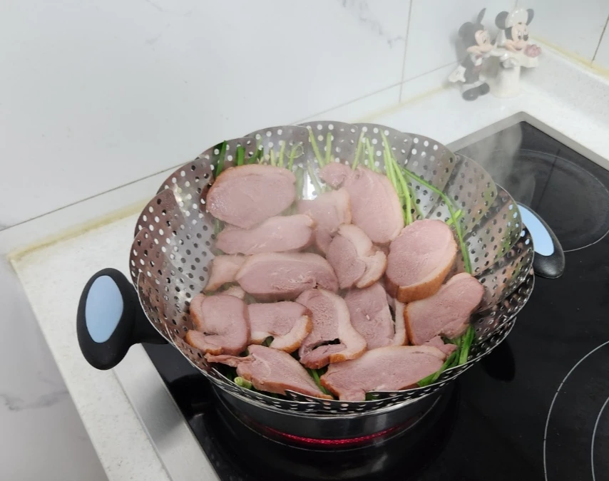 그랬던 터라 오랜만에 만난 부추가 반가웠죠. 부추는 제가 아이들에게 훈제오리를 반찬으로 줄 때 애용하는 야채이기 때문입니다. 아시다시피 훈제오리는 아질산나트륨이 합성첨가물로 포함되어 있기에 저희 집에서는 바로 굽지 않고 뜨거운 증기로 쪄서 요리를 합니다.