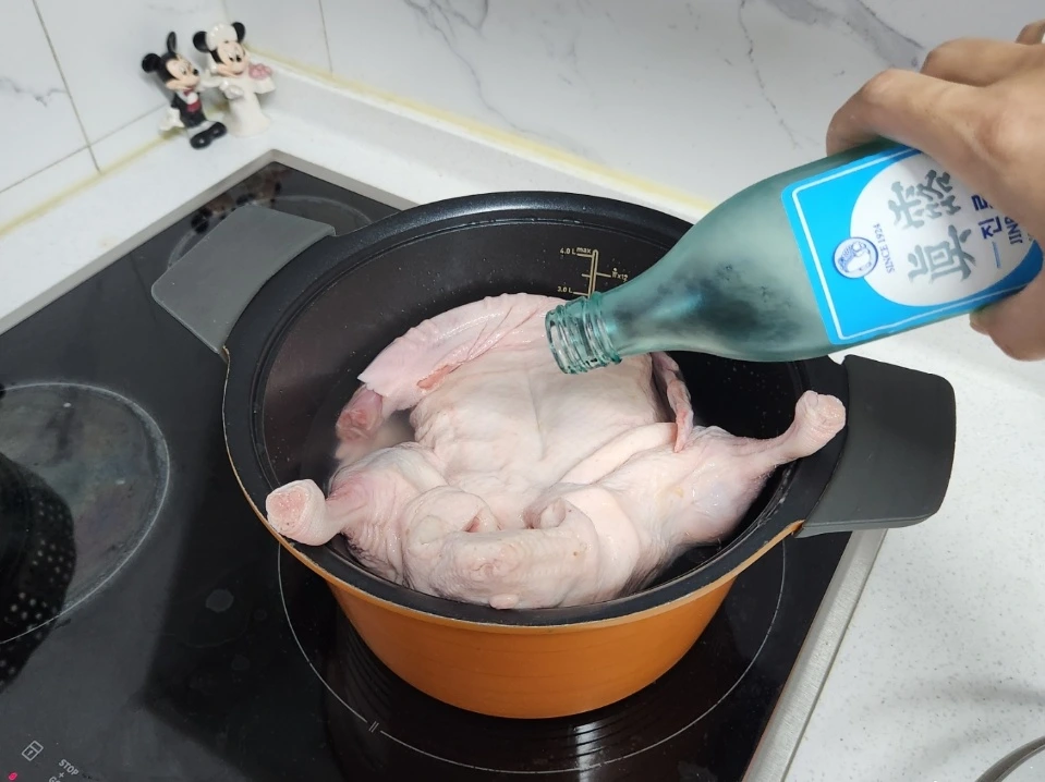 결심을 하고 나니 행동은 빨라집니다. 일단 큰 냄비를 꺼내서 우람한 오리를 꾸역꾸역 쑤셔 넣었습니다. 그리고서는 물을 채워 넣고 남아있는 소주를 모두 부어버린 뒤 잡내를 없애기 위해서 끓이기 시작했죠.