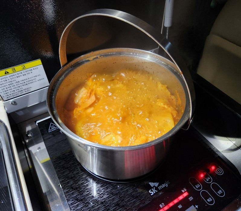 일단 일은 벌어졌으니 어쩌겠습니까. 수습을 하나씩 해나가야죠. 금요일 아침이 밝았고 캠핑카를 빌려 집으로 옵니다. 기본 캠핑 세트에 있는 음식과 함께 먹을 추가 준비물들을 실어놓은 뒤에 이불 짐, 침낭, 옷가지까지 쑤셔 넣습니다.