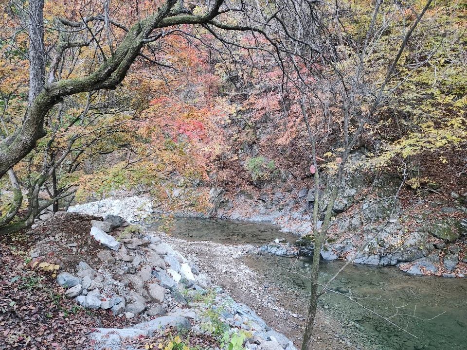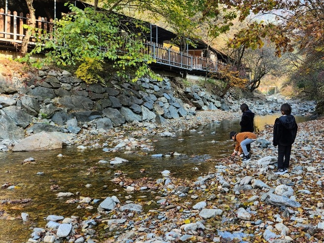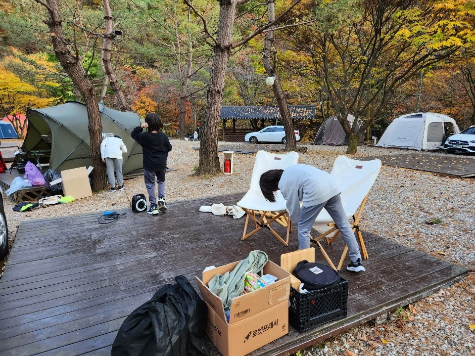 2시간의 운전을 거쳐 홍천 깊숙한 곳에 위치한 캠핑장에 도착합니다. 이름이 참 낭만적입니다. 여기가 우리의 2박 3일간의 베이스캠프입니다. 경치도 참 좋네요. 단풍이 울긋불긋 해지는 가을산도 좋고 지척에 계곡도 있으니 그야말로 놀기 좋은 곳입니다.
