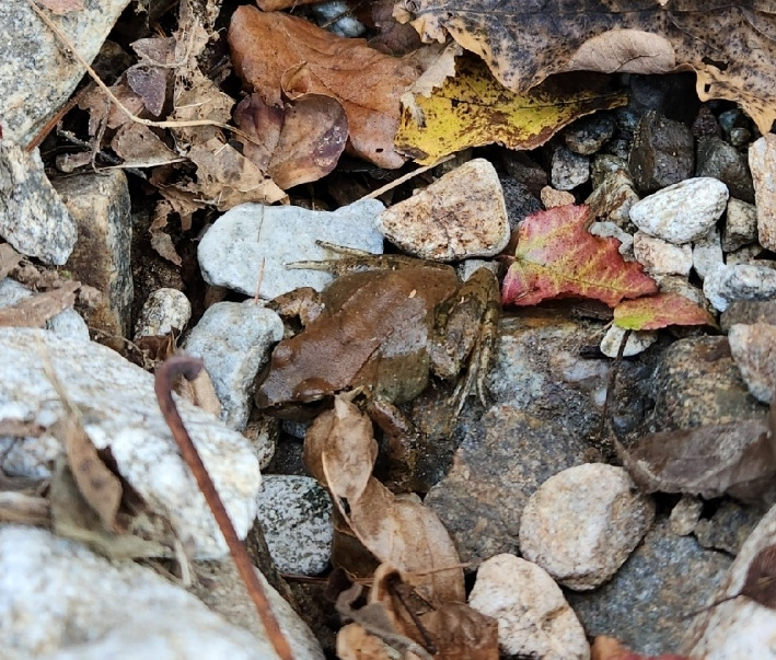 평평한 바위를 모아 두고 커다란 돌멩이들을 던져 넣습니다. 그리고 작은 자갈들을 채워 넣고 마지막에는 떨어진 낙엽으로 빈틈을 채웁니다. 손이 시리지만 아랑곳하지 않습니다.