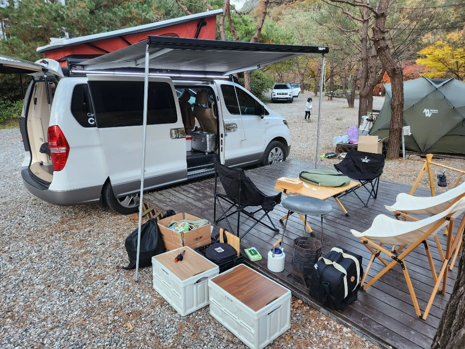 그 많은 캠핑장 데크 중에서 캠핑카를 가지고 온 집은 저희 집뿐입니다. 좀 창피하다는 생각도 들지만 그런 것 따위 제가 아랑곳 할리 없지요.