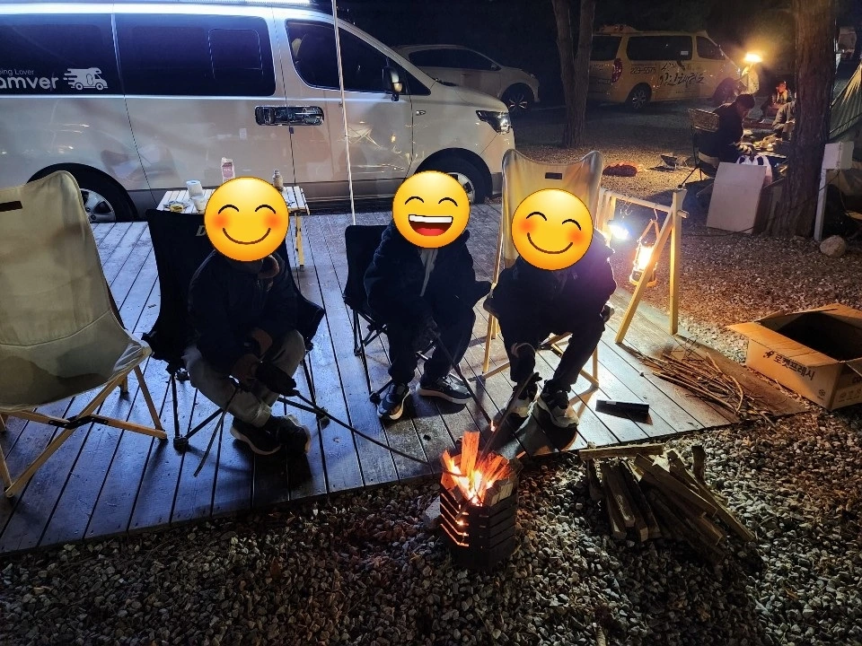아이들 셋을 태운 뒤 금요일 오후 세 시에 남자 넷은 캠핑카를 타고 홍천으로 출발합니다. 남자 넷 중에 얼굴색이 거무튀튀한 사람은 단 한 명뿐입니다. ㅇㅇ이는 수학학원 보강을 밤 열 시까지 하고 올 정도로 열정을 보였고 2호는 며칠 전부터 설레서 잠을 설쳤다니 말 다했죠.