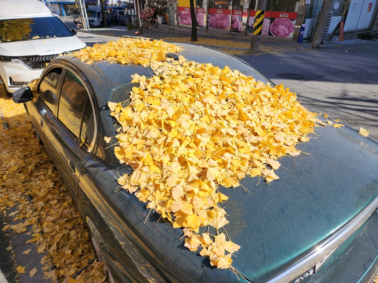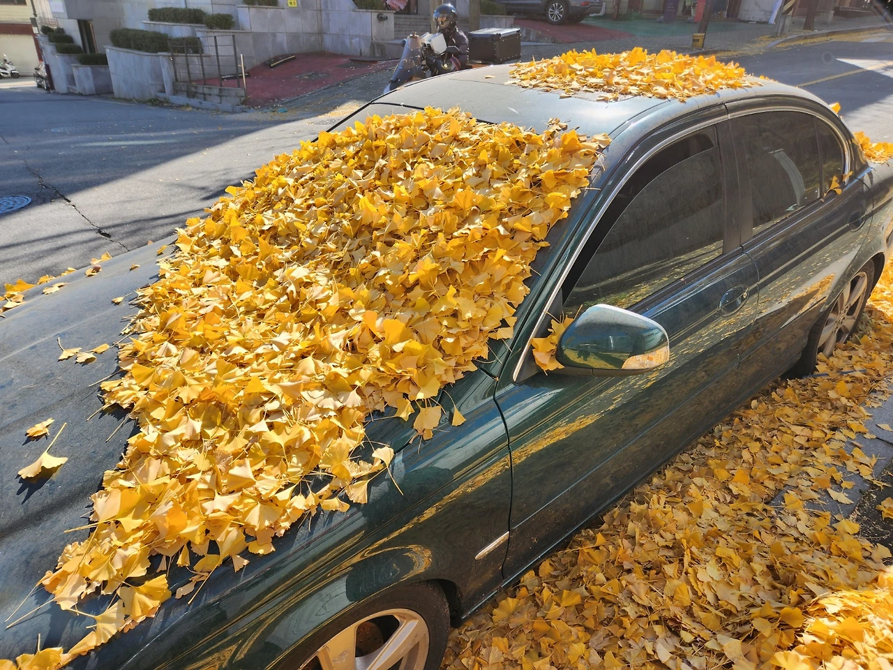 미화원 분들이 저 차의 은행잎은 치우시지 않으시겠죠? 말 그대로