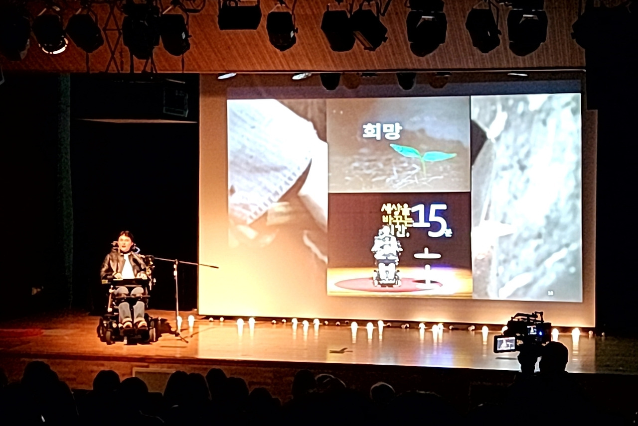 그분은 강의를 하는 내내 몇 번이나 재치 있는 말로 청중을 웃게 만들었습니다. 말로 모두 표현하기도 힘들 만큼 극한의 상황들을 오랜 시간 겪으면서도 누군가를 웃게 만들 수 있다니 참으로 대단해 보였습니다. 강사님은 스스로 강의 화면을 넘길 수 없어서 말로 "다음, 다음"이라고 해야 하는 상황이면서도 말이죠.