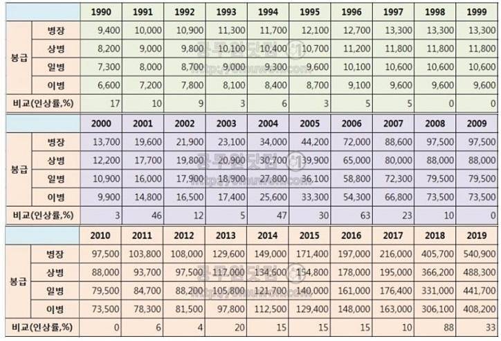 시간이 가면서 군대 이야기를 할 이야기는 점점 없어졌고 뉴스를 통해서 요즘 군대가 어떤지를 알게 됩니다. 얼마 전에는 현역 군인들의 월급 변천사를 보고 한 번 놀랐습니다.