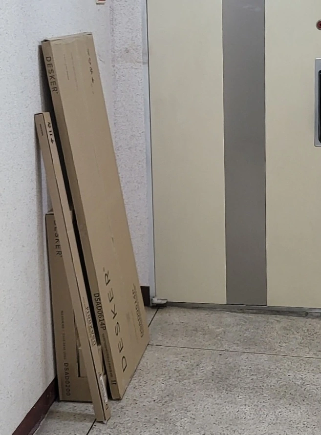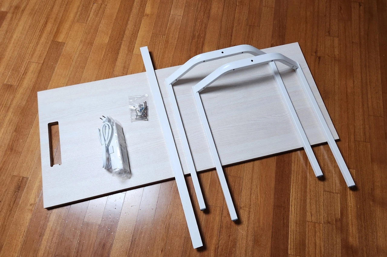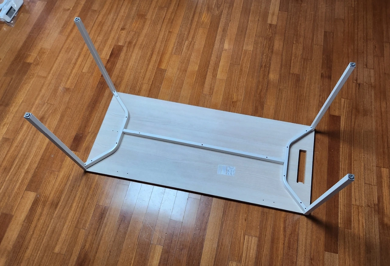 기존 책상과 높이가 같은 제품을 긴급하게 수배해서 구매를 했고 배송이 잘 되었습니다. 포장을 뜯어서 바닥에 깔아봅니다.