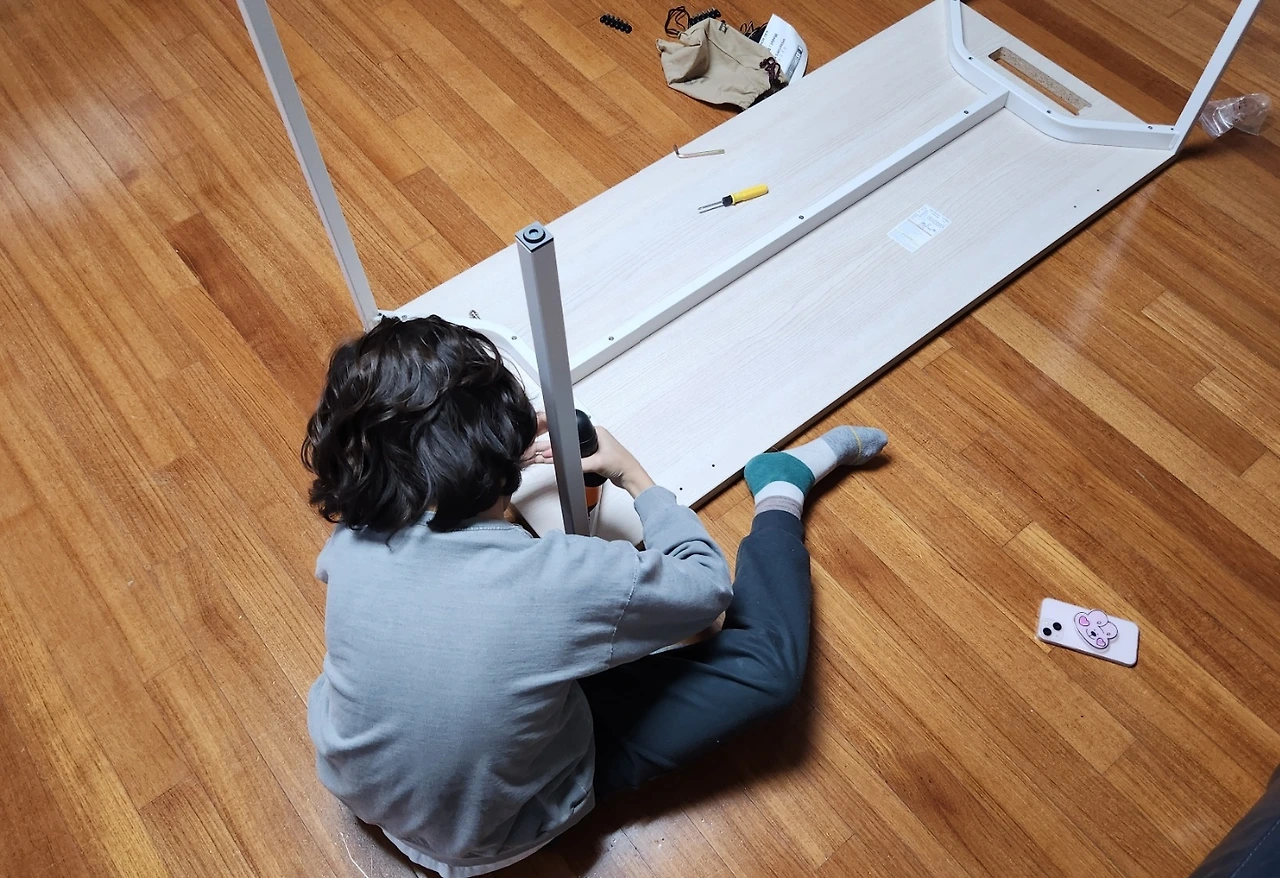 그렇지만 정말 조용한 곳에서 집중을 하면서 해야 하는 경우도 생깁니다. 문제는 아이 둘 다 조용하게 자신의 숙제를 하고 싶다고 할 때입니다. 그래서 컴퓨터 방을 정리하고 새롭게 가구를 들이기로 결정합니다. 즉흥적으로 결정한 일이죠.