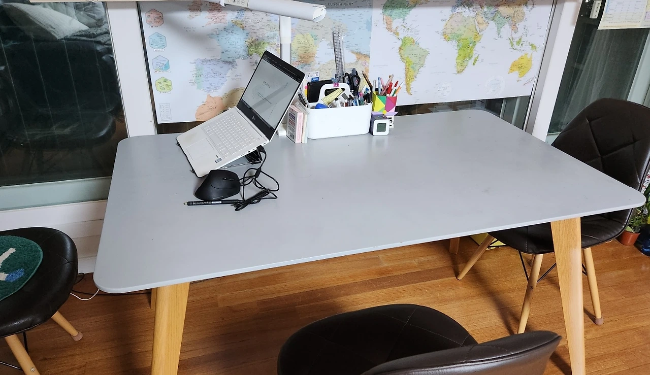 새로운 책상이 엄청난 학구열을 불러일으킬 것이라 기대를 하지는 않지만 확실한 장점은 있네요. 앞으로 아이 둘이서 컴퓨터방에서 서로 앉겠다면서 아웅다웅하는 모습을 보지도 않아도 된다는 점입니다. 아직 저는 탁 트인 거실에서 하는 공부에 대한 신뢰가 깊지만 나란히 놓은 책상 앞에 앉아서도 자신들의 미래를 위해 효과적으로 잘 활용할 수 있기를 기대해봅니다.
