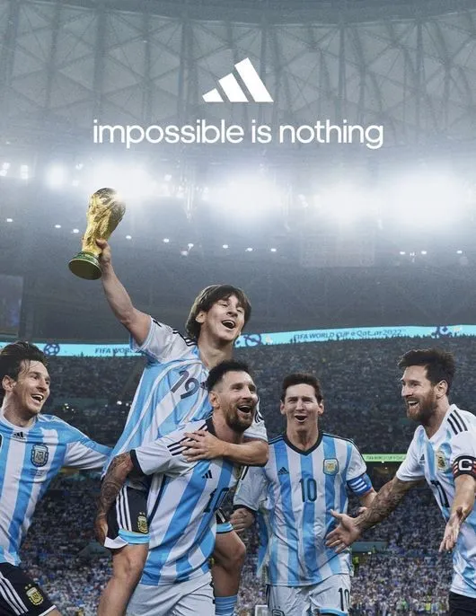 월드컵에 다섯 번 출전한 메시 사진으로 만든 아디다스의 소셜미디어 축하 메시지