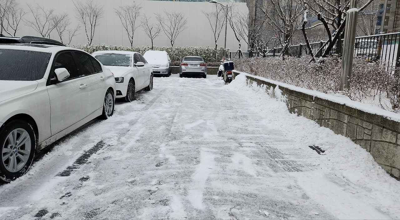 회사로 향하는 길은 모두 대로라고 불리는 넓은 길이라 이미 염화칼슘이 넉넉하게 뿌려진 상태였습니다. 다행히 눈길임에도 차가 움직이는 경로를 크게 방해하지 않았기에 제때 목적지에 도착할 수 있었습니다.