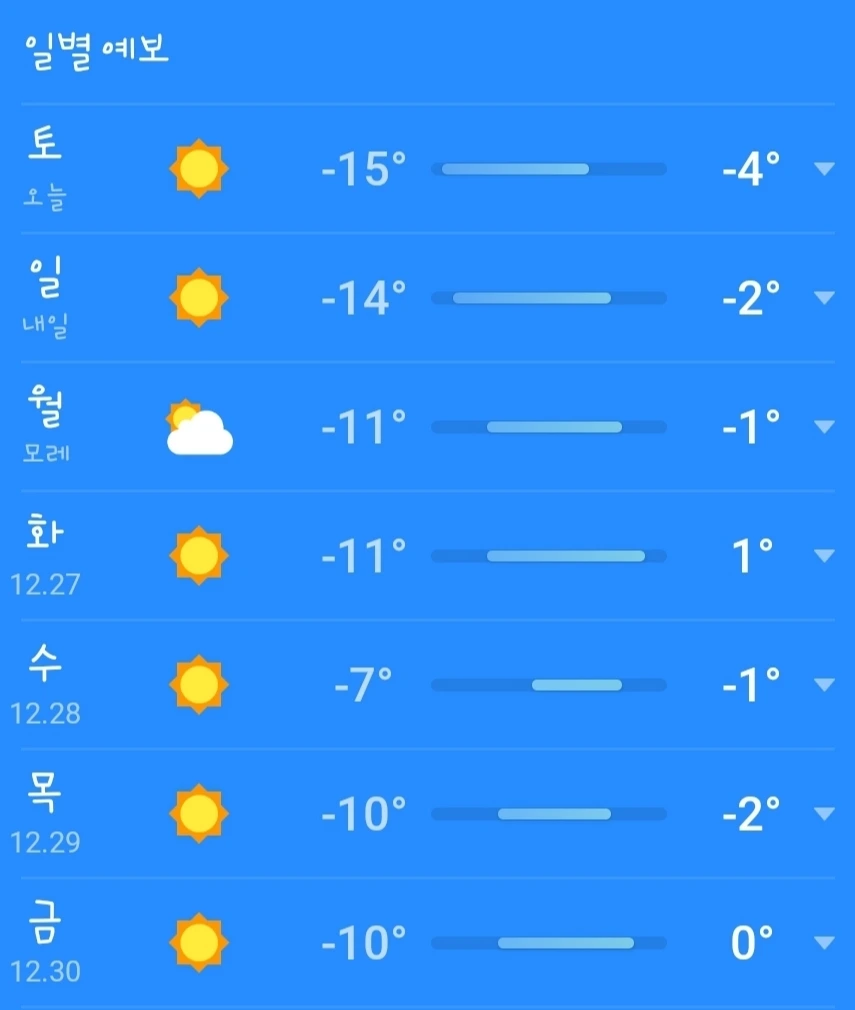 오늘 기온만 해도 영하 15도를 찍었고 내일도 영하 14도를 기록할 것으로 예보되어 있습니다. 너무 추워서 예년에도 이 정도 기온이 흔했나 싶었는데 그렇지는 않았습니다. 작년에 서울이 영하 15.5도까지 떨어진 날이 있었는데 41년 만에 가장 추운 날씨로 기록되었다고 합니다. 영하 15도의 온도는 어마어마한 수준이었던 것이죠. 참고로 41년 전에는 최저 기온은 영하 16.2도였죠.