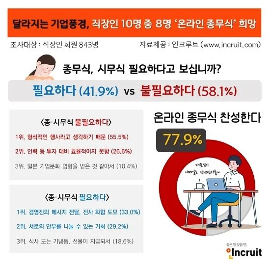 여느 회사가 다들 그렇듯 한 해의 마지막 근무일은 특별히 처리해야 할 업무는 없어서 한산하게 지나가는 편입니다. 그런 와중에 오전 시간에 강당에서 종무식이라는 것을 한다는 공지가 내려옵니다.