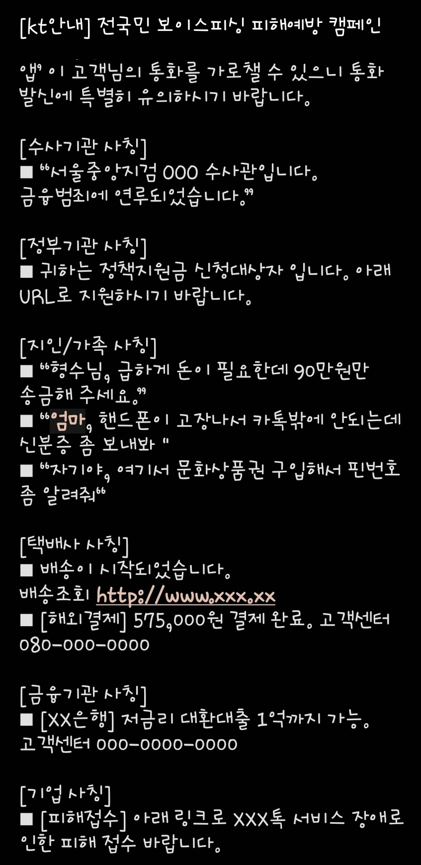 피싱 그러니까 전화금융사기는 많은 사례가 전파되고 있고 계몽활동이 시행 중입니다. 하지만 줄어들기는커녕 계속 늘고 있다는 사실은 범죄자들의 수법이 더 빨리 진화되고 있다는 점도 있겠지만 우리가 생각보다 이 심각성을 가벼이 여기고 있어서인지도 모릅니다.