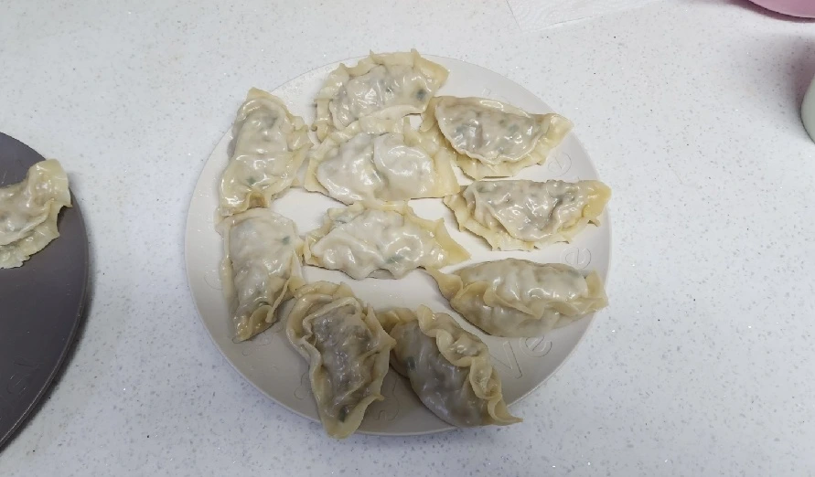 결국 나머지 만두피와 만두소는 장모님과 제 몫이었습니다. 마지막 한 장의 만두피까지 정성스레 싸고 저의 인생 첫 번째 만두 빚기는 마무리되었습니다.아이를 위해 준비한 체험이 제 체험으로 변질된 듯합니다.