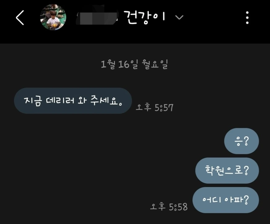 메시지가 온 시간은 아이가 학원에 있을 시간인데 무슨 일이 생겼나 걱정이 되어 전화를 했는데도 연결이 되지 않았죠. 메시지를 보내도 답이 없었습니다.