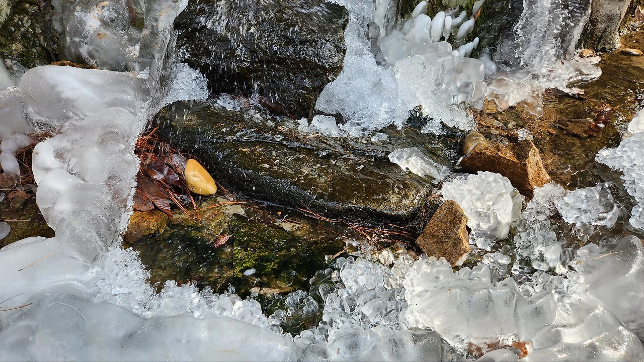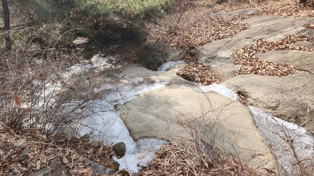 생각보다 많은 곳에서 봄의 기운이 올라오고 있는지 흐르는 물들이 보입니다. 얼음 사이로도 물이 흐르는 특이한 광경도 보입니다.