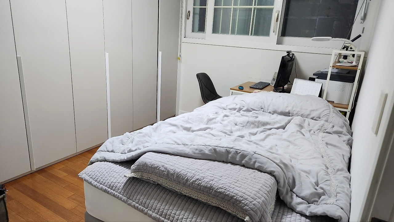 하지만 새롭게 생긴 컴퓨터방의 공간을 활용하기 위해 급히 안방에 있는 침대를 하나 옮기기로 했습니다. 갑작스럽게 결정하고 진행하게 된 일이죠. 나중에 중학생이 되고 나서 언젠가 아이들의 방을 나눠줄 것을 대비해 싱글침대 하나를 미리 옮겨놓자는 의견이 또 나왔고 고민 끝에 합의를 하게 된 것입니다.