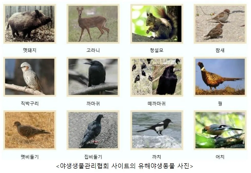 보통 유해동물로 지정되는 건 멧돼지처럼 인명피해 우려가 있기도 하고 농작물 피해를 입히기도 하며 정전을 유발하는 경우도 있기 때문입니다. 심지어 새들은 직접 포획을 하면 마리당 얼마간의 돈을 지불하는 제도까지 있죠. 인간에게 피해를 끼치는 동물들은 용서하지 않겠다는 강한 의지가 보이네요.