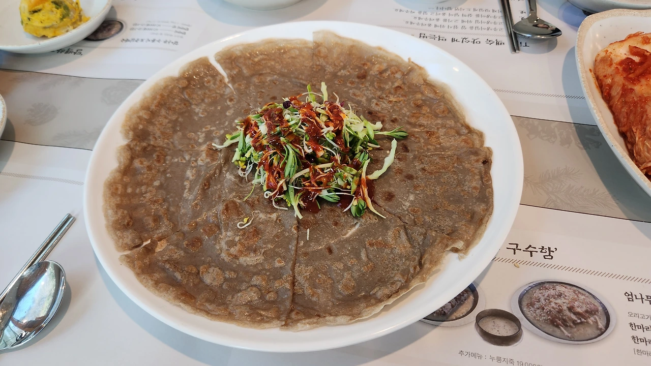 그곳을 갈 때마다 주문해서 먹는 음식은 오리백숙입니다만 사실 아이들이 최근 들어서 부쩍 잘 먹는 음식은 따로 있었습니다. 바로 바삭함과 촉촉함을 동시에 가진 메밀전입니다.
