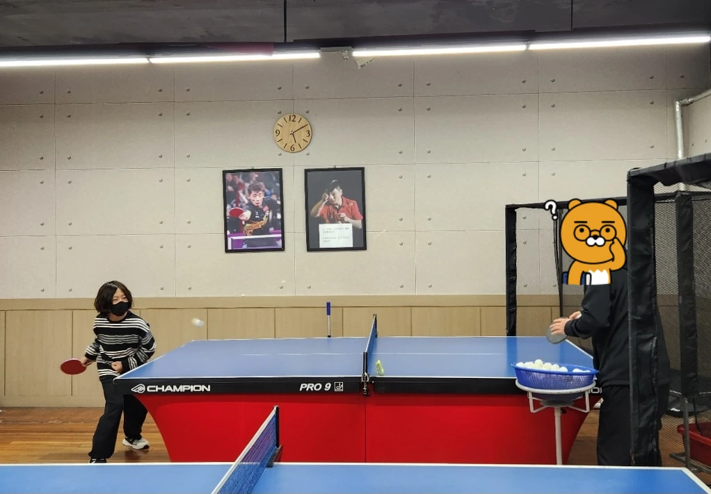 두 아이가 돌아가면서 레슨을 받는 동안 기다리는 동안 아이 한 명과 돌아가면서 탁구를 함께 쳤습니다. 탁구를 제대로 배운 적은 없지만 그래도 어쭙잖게라도 조금은 칠 줄 압니다.
