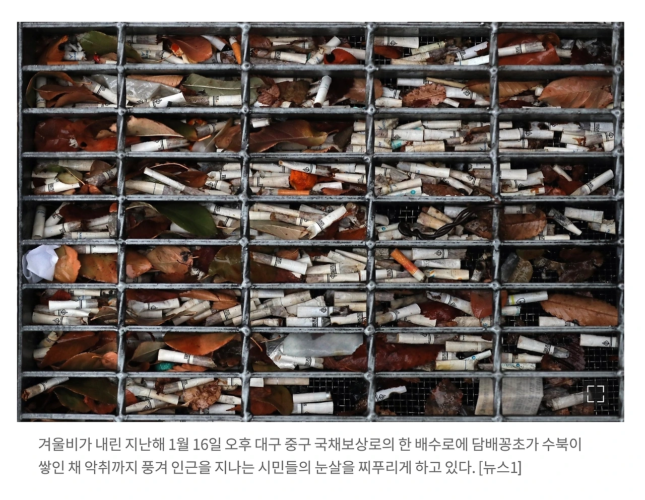 예전에 아이들과 플로깅을 했을 때 단일 항목으로 쳤을 때 가장 많이 주웠던 것이 담배꽁초였기 때문입니다. 셋이서 모은 걸 합치면 못해도 최소 백 개피는 넘었을 겁니다. 그때도 아이들과 담배꽁초를 왜 이렇게 많이 버리냐는 이야기를 하면서 투덜거렸기 때문에 기억하고 있죠.