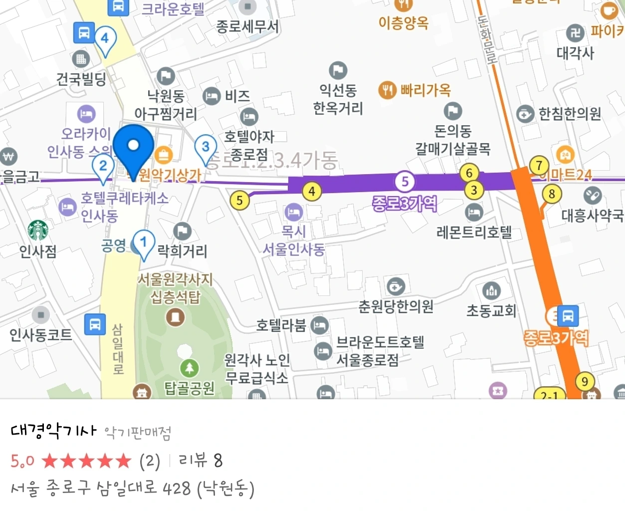 종로3가역 5번 출구 밖으로 나오니 낙원악기상가를 찾기란 어렵지 않습니다. 어린아이라도 찾을 수 있을 정도로 가깝습니다. 하지만 여기서부터가 시작입니다. 이 건물이 오래되다 보니 구조가 상당히 복잡한 미로처럼 되어있어서였죠.