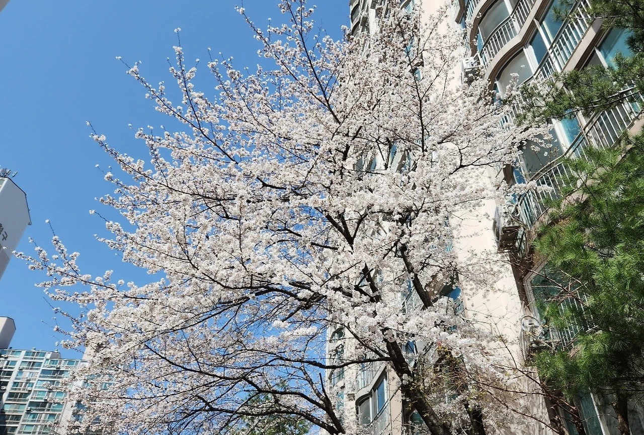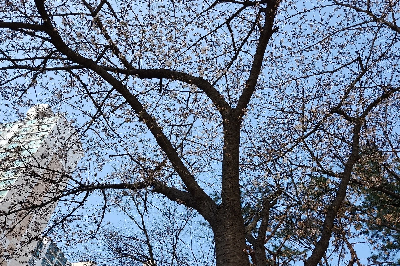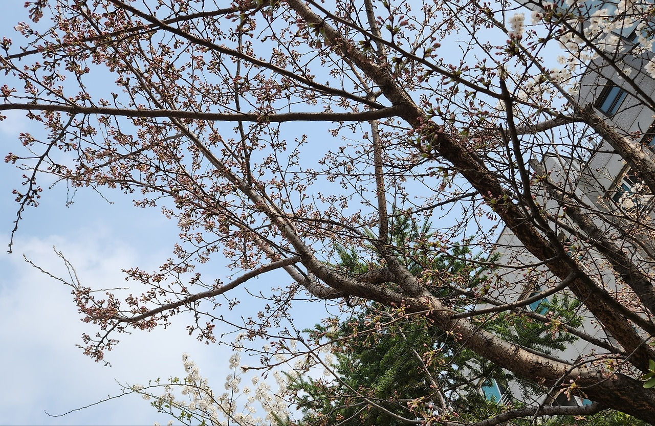 제가 사는 서울에도 벚나무가 많은데 어떤 나무는 자세히 보지 않으면 벚나무인지 알 수도 없을 정도로 아직 꽃잎의 흔적조차 보이지 않는 녀석들이 있습니다. 좀 느린 아이들이죠.