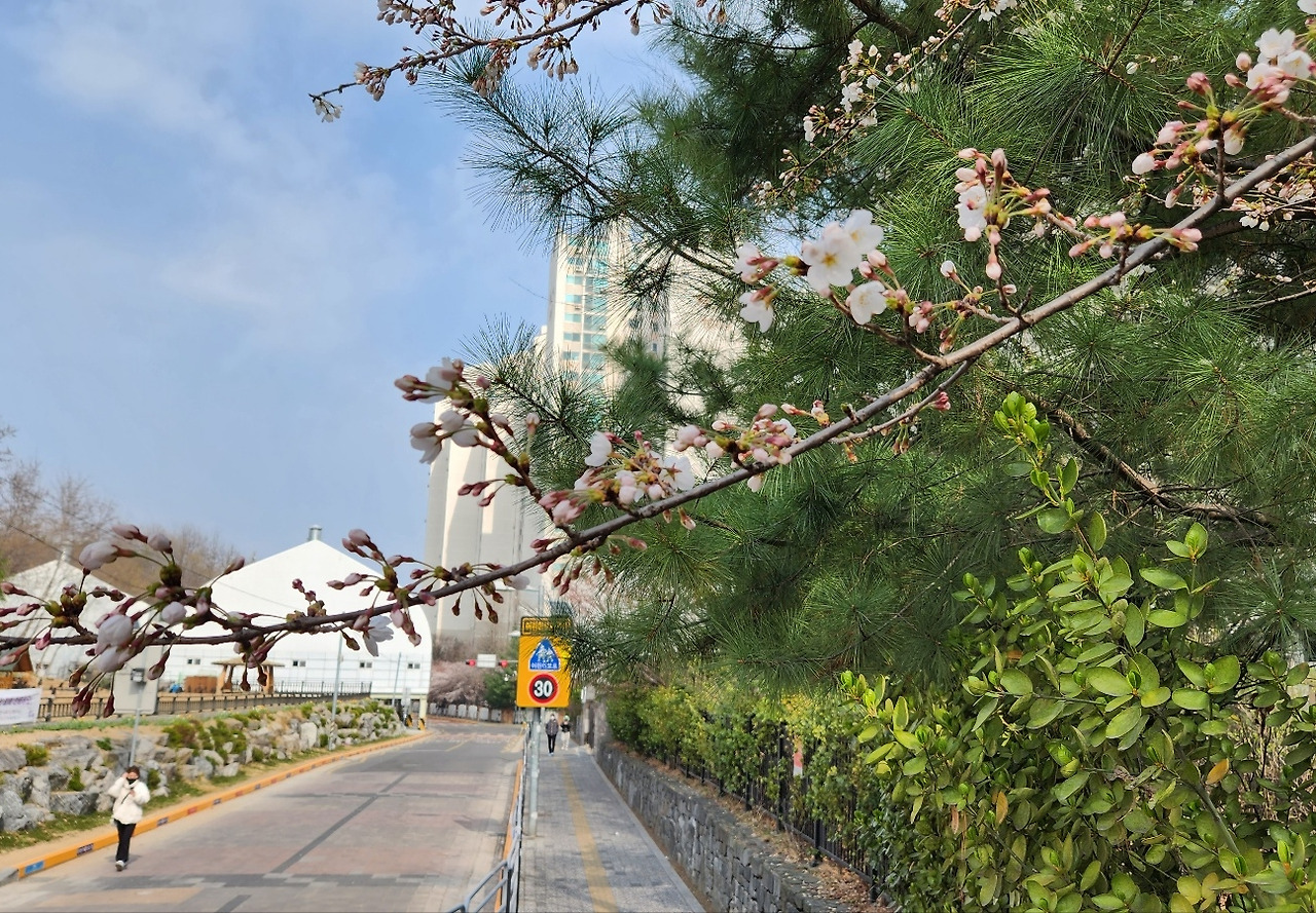 어떤 나무는 마치 남부지방의 벚나무처럼 화사하게 만개한 벚꽃으로 보는 이들의 눈을 호강시켜 줍니다.