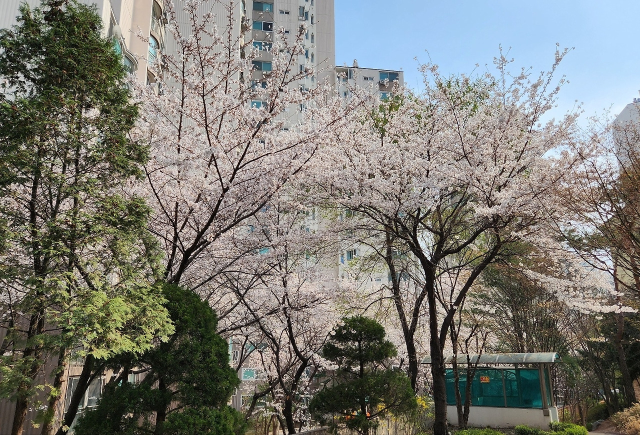 아마 이 벚나무들은 비슷한 시기에 모두 심어졌을 겁니다. 아파트의 나이가 비슷하니까요. 같은 동네에서 같이 자랐을 텐데 꽃잎이 나는 순서가 천차만별인 벚나무를 보니 학부모총회 때 교장선생님께서 자녀교육에 대해서 해주셨던 말씀이 문득 떠오릅니다.