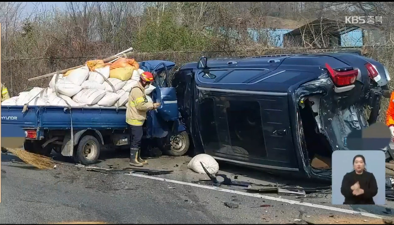 [KBS 청주]오늘 오후 2시 40분쯤 진천군 이월면 중부고속도로에서 63살 A 씨의 1톤 화물차가 앞서 가던 SUV를 들이받으면서 차량 3대가 연쇄 추돌했습니다. 이 사고로 A 씨 등 4명이 다쳤습니다. 경찰