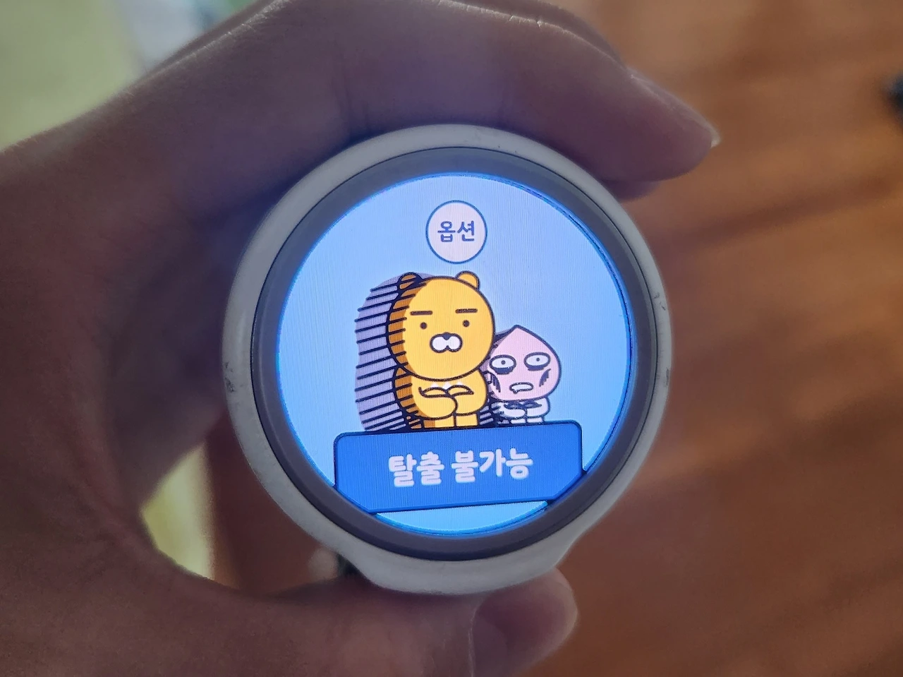애타는 부모의 마음과는 달리 아이들은 이 상황이 재미있었던 모양입니다. 키즈워치로 이 상황을 이모티콘으로 표현해 줍니다. 맞습니다. 그야말로 '탈출 불가능'한 상태였던 거죠.