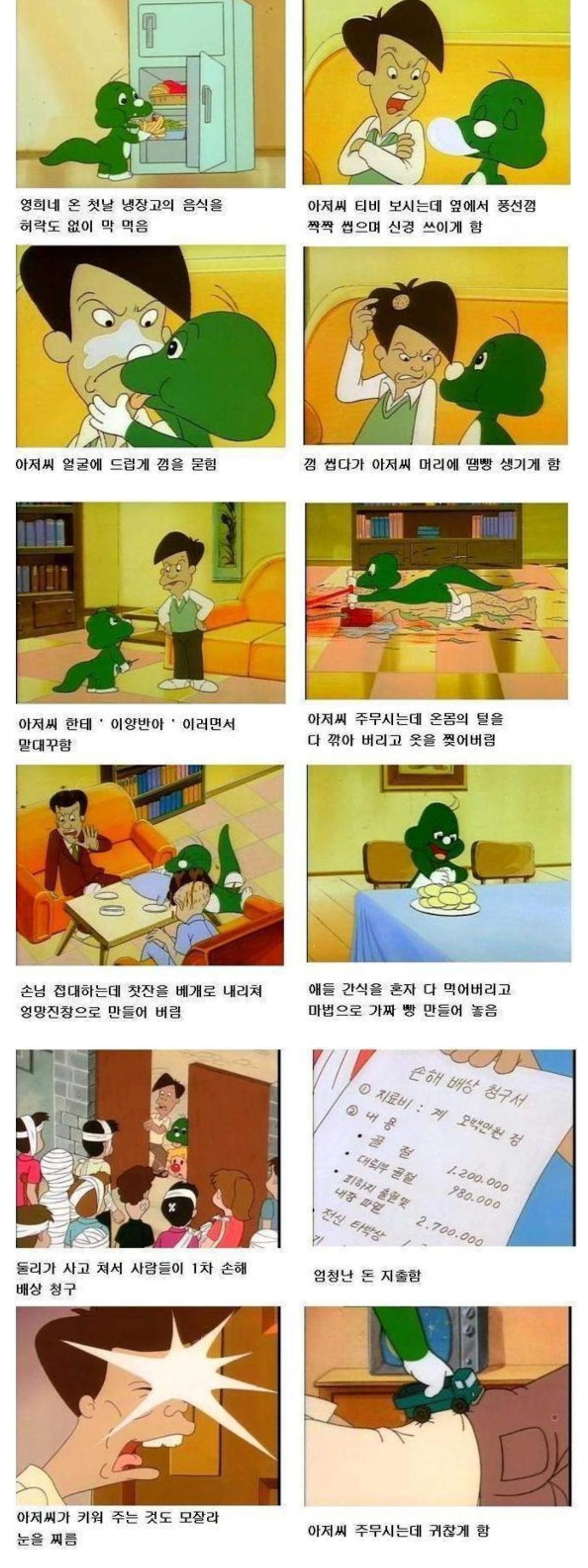 어린 시절 저는 <아기공룡 둘리>를 보면서 고길동을 정말 미워했습니다. 귀여운 둘리를 못 살게 구는 성격 나쁜 아저씨였으니까요. 하지만 어른이 되고 보니 고길동이라는 사람이 인도주의적 차원에서 얼마나 간디만큼이나 큰 위인이었는지 깨닫게 되었습니다.