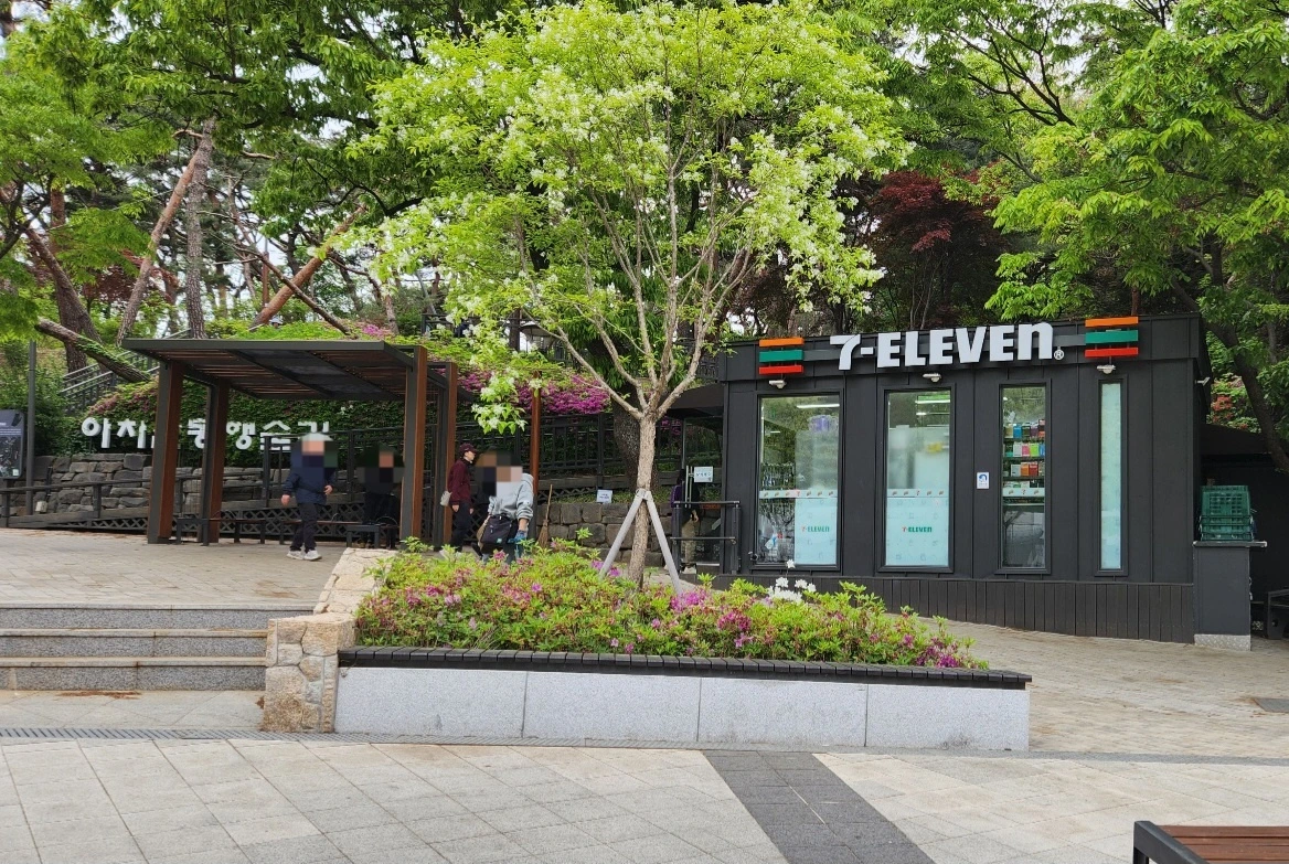 아차산 입구의 편의점이 오늘 트래킹의 최종 목적지가 되었습니다. 바삐 나오느라 빈 손으로 나온 삼부자이기에 편의점에서 아무것도 사지 않을 리는 없죠.