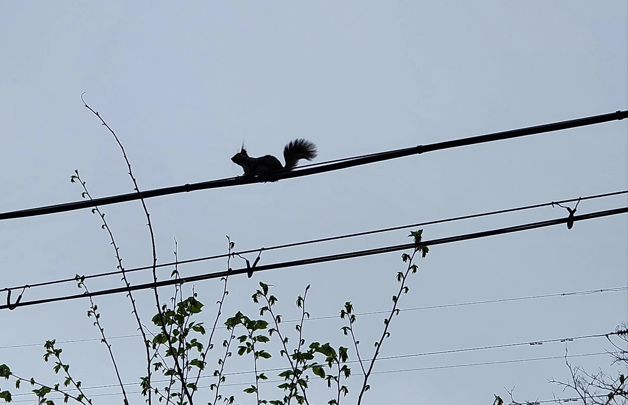 여러 마리의 청설모도 구경하고 전주와 연결된 통신선을 길 삼아 이동하는 청설모는 참 영리해 보입니다.