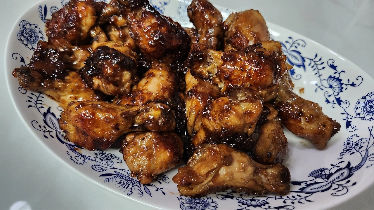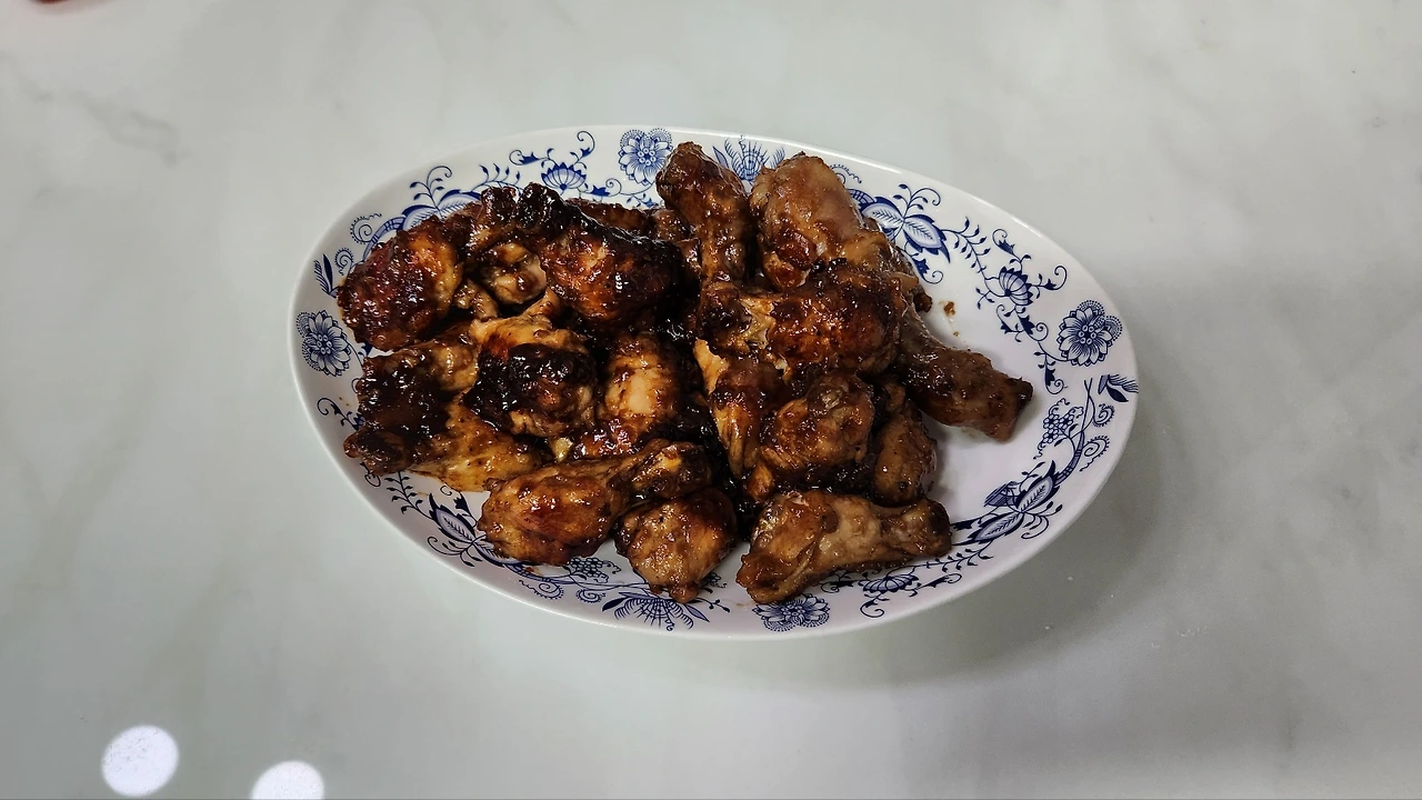하지만 적외선 온도계가 정확한 것만은 아니더군요. 1차 시기로 투입된 닭봉 두 개가 순식간에 바싹 익어 버립니다. 너무 온도가 높았던 거죠.